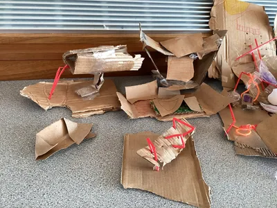 The children then create small models using cardboard, straws, tape and paper.